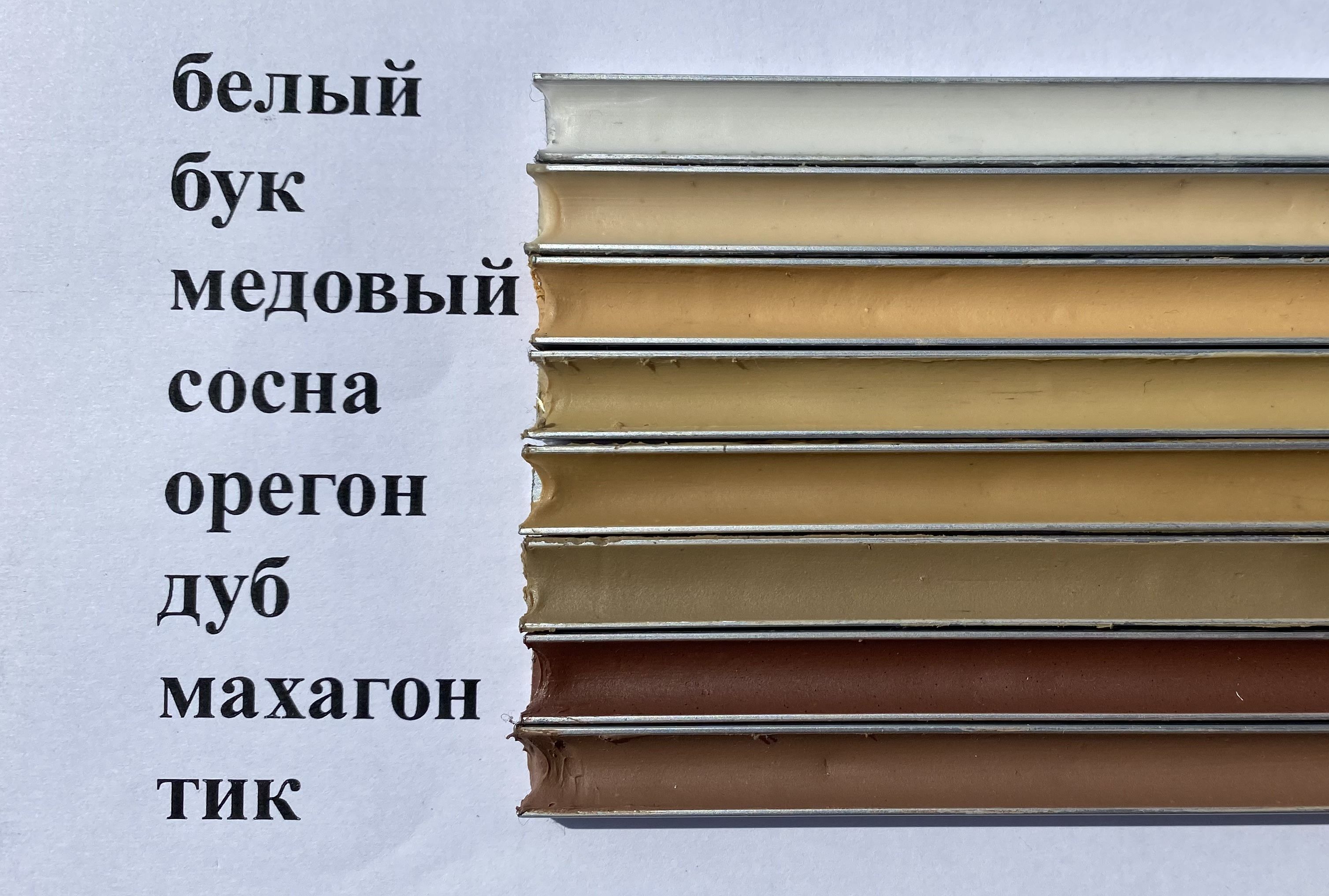 Товар представлен в следующих цветах: Белый; Бук; Дуб; Махагон; Медовый; Орегон; Серый; Сосна; Сосна Золотая; Тик