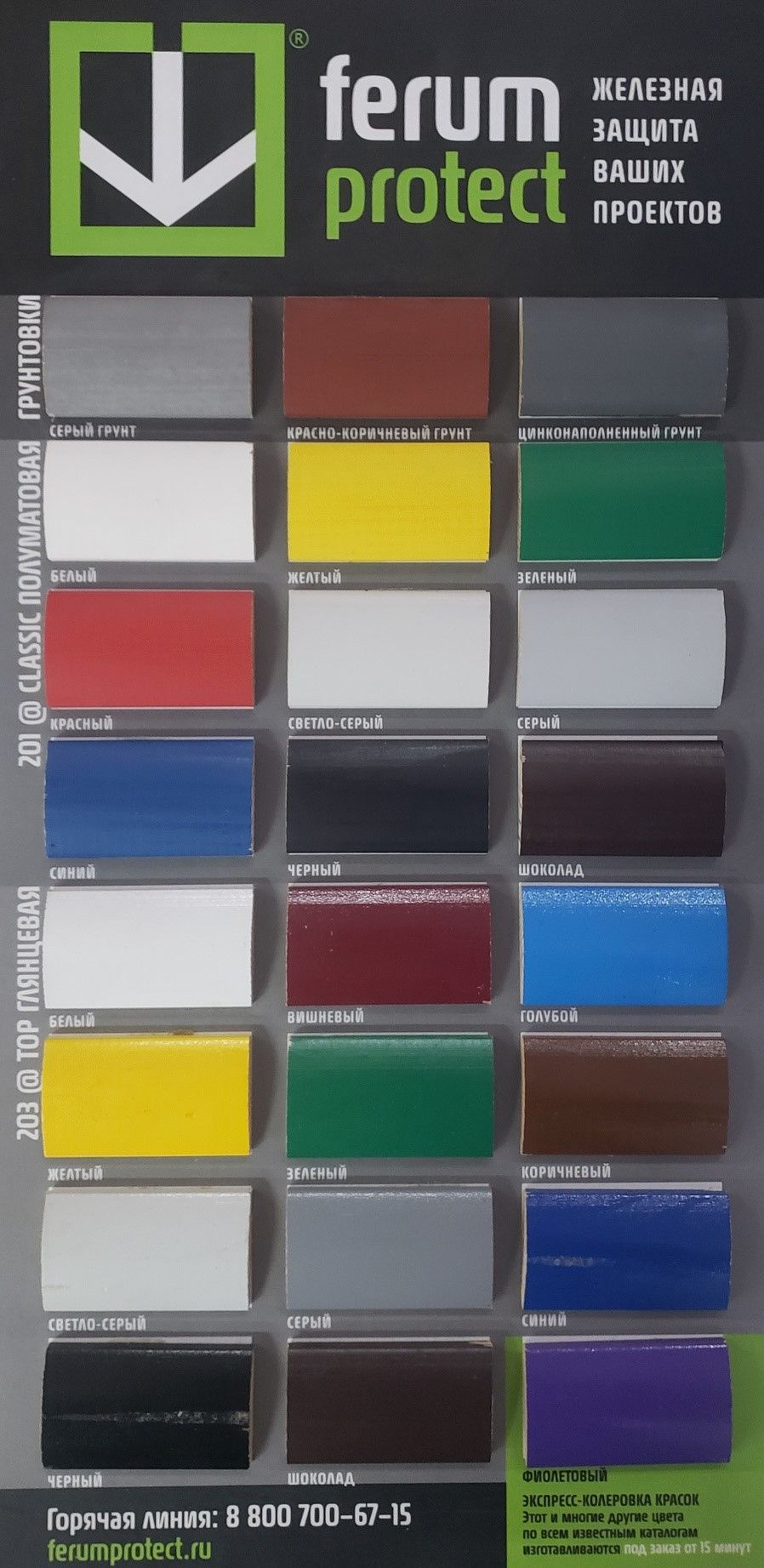 Палитра цветов грунт-эмали 3в1 Ferumprotect
