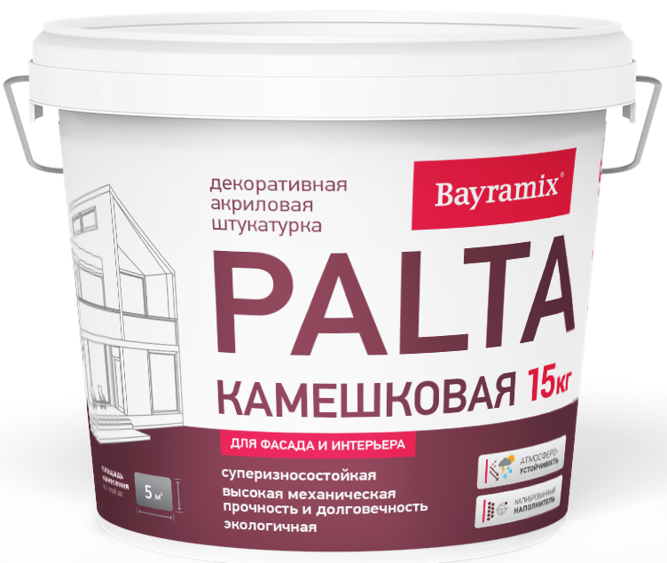 Камешковая штукатурка Palta средний - это Высокопрочная камешковая штукатурка для фасадов и интерьеров
