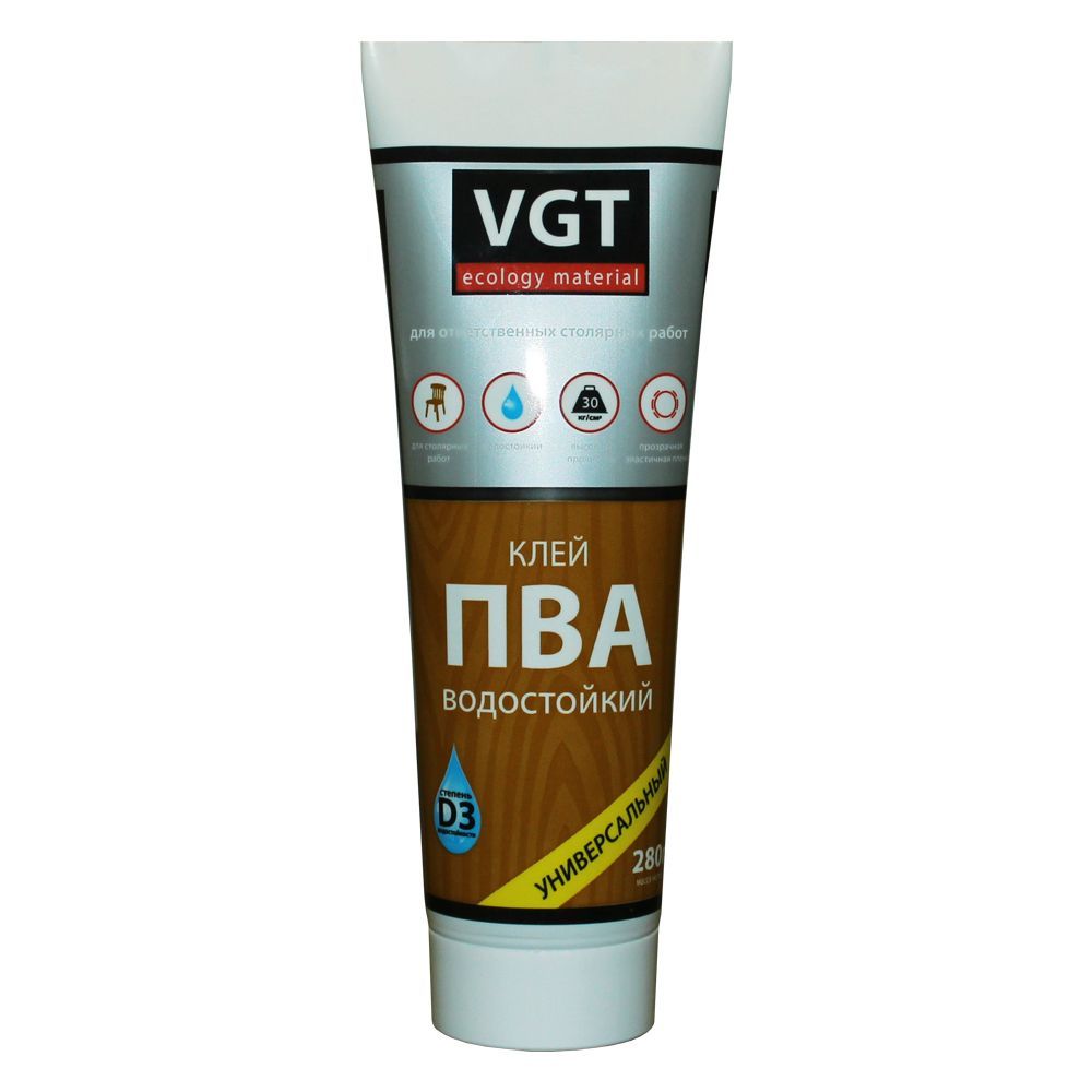 Клей ПВА водостойкий ВГТ - это Клей столярный водостойкий. Имеет высокую адгезию к дереву, ДСП, ДВП, бумаге и пр.