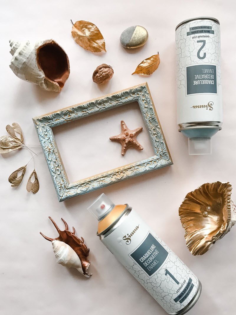 Важно! Трещины образуются только при использовании одновременно двух баллонов Siana Craquelure Base coat (базовый слой) и Siana Craquelure Top coat (финишный слой).
