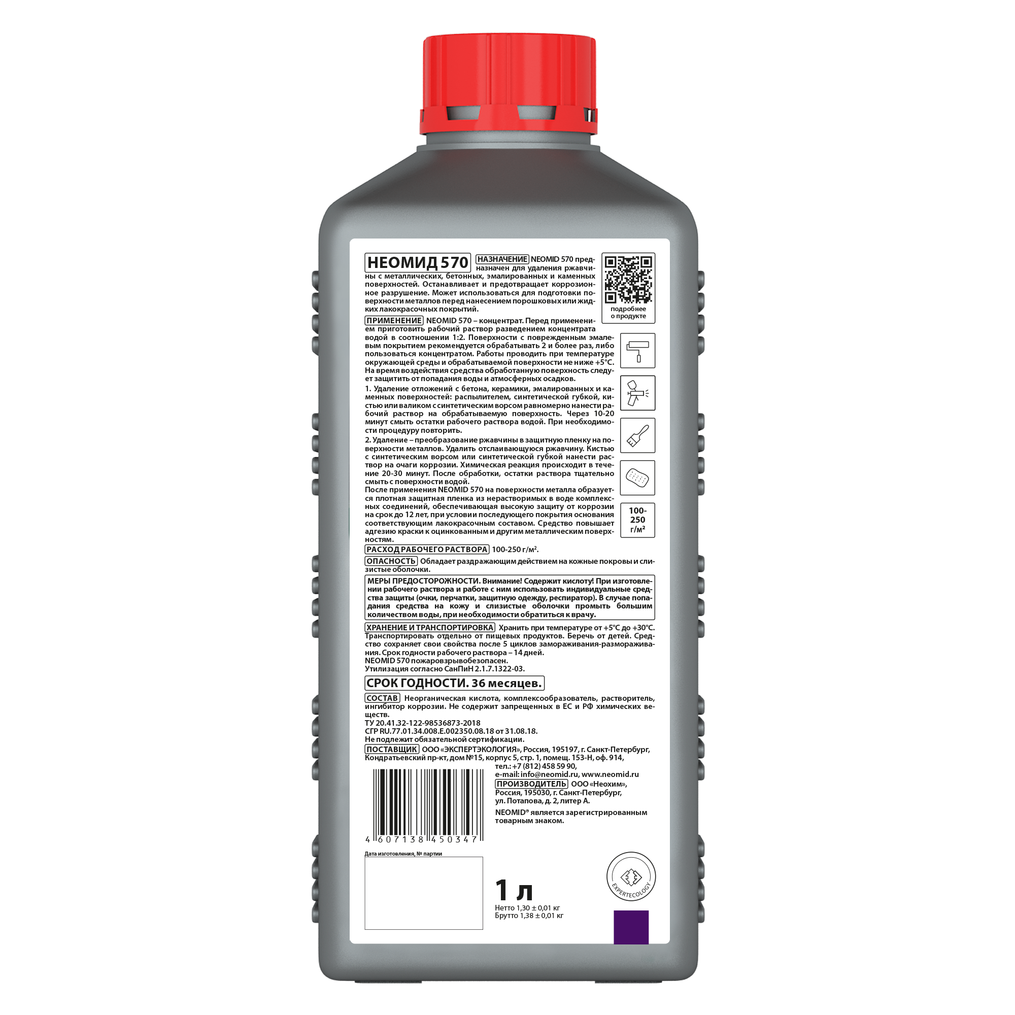 Преобразователь ржавчины NEOMID 570 - это Состав для удаления ржавчины. Обеспечивает высокую защиту от коррозии на срок до 12 лет